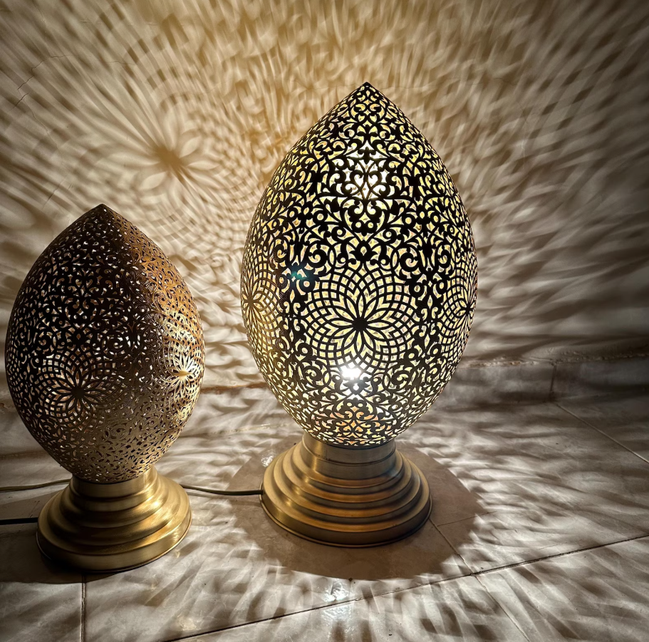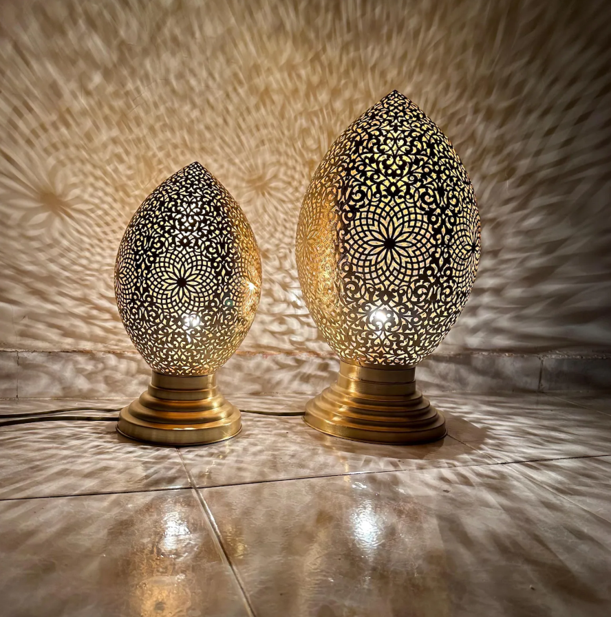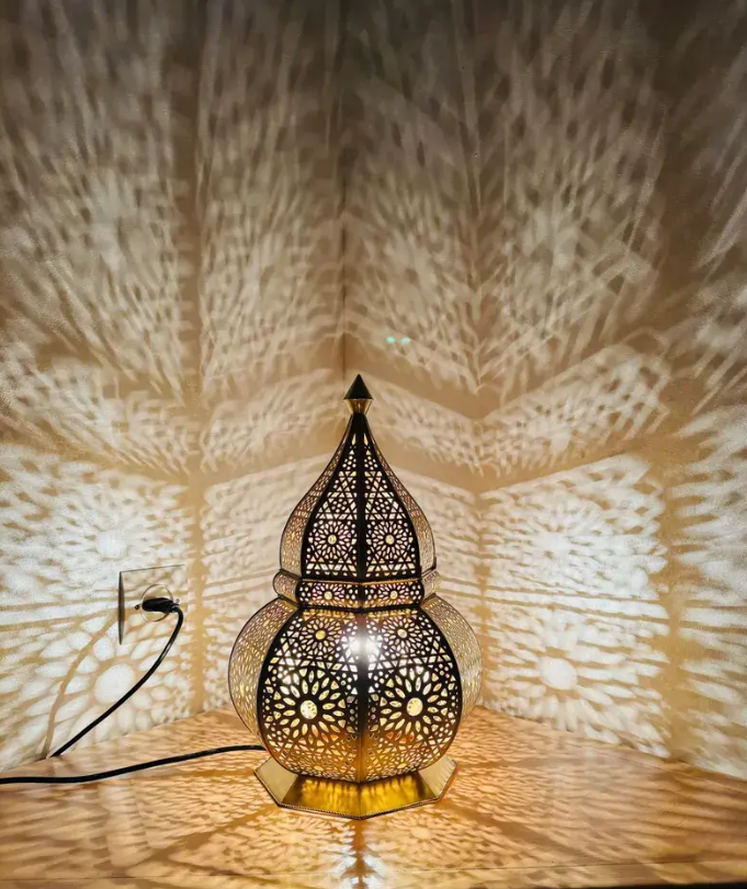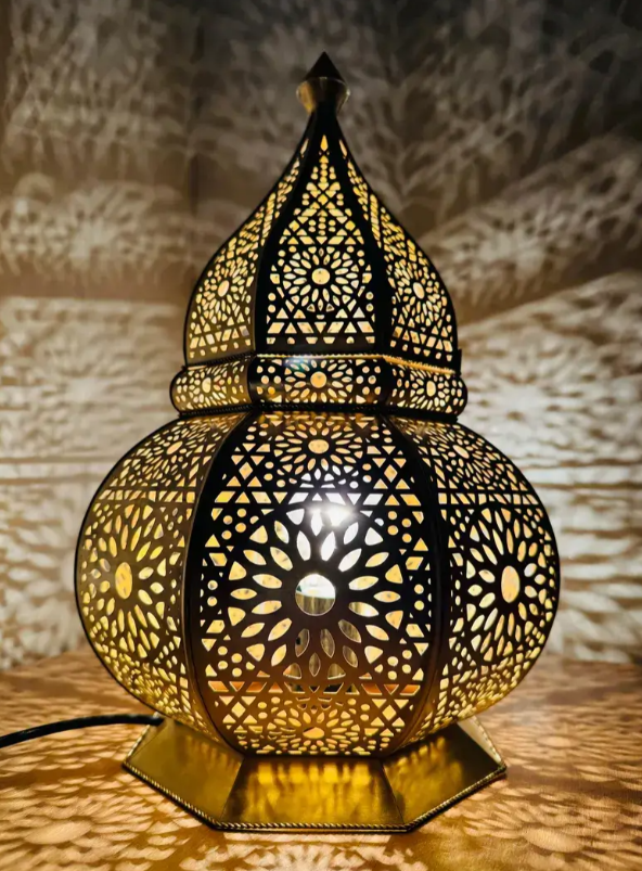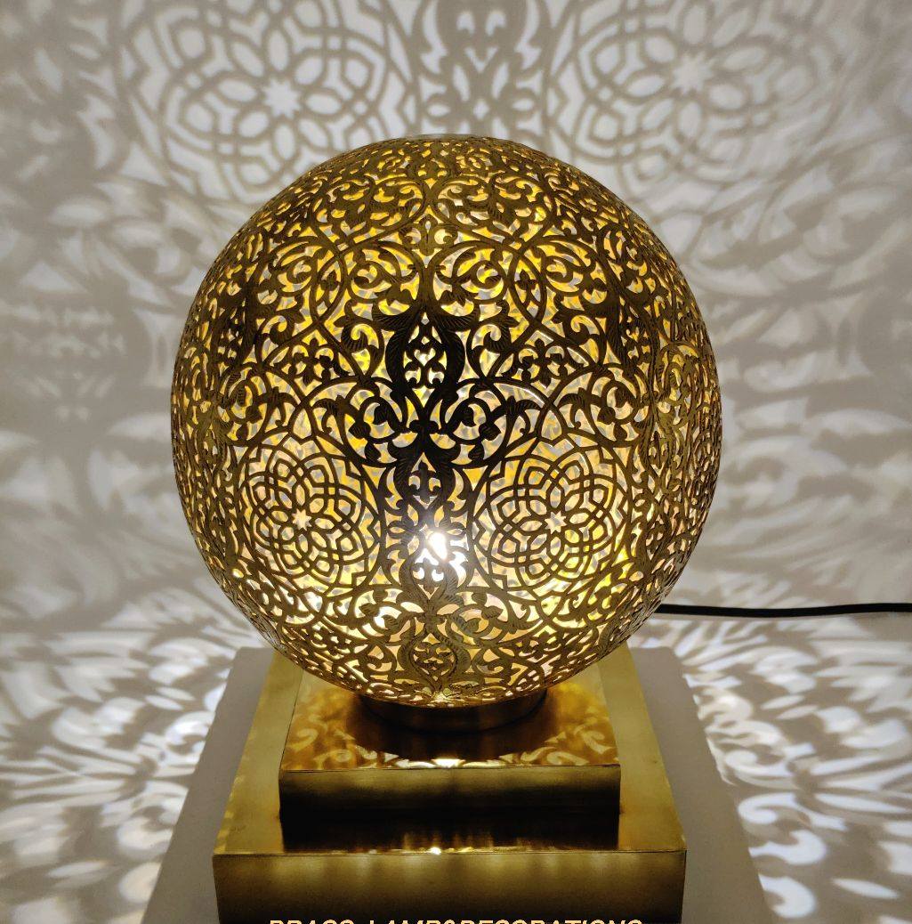 Lampada da Tavolo Marocchina in Ottone Fatto a Mano – Paralume Artistico