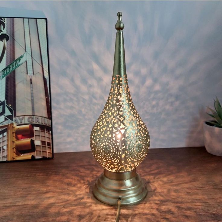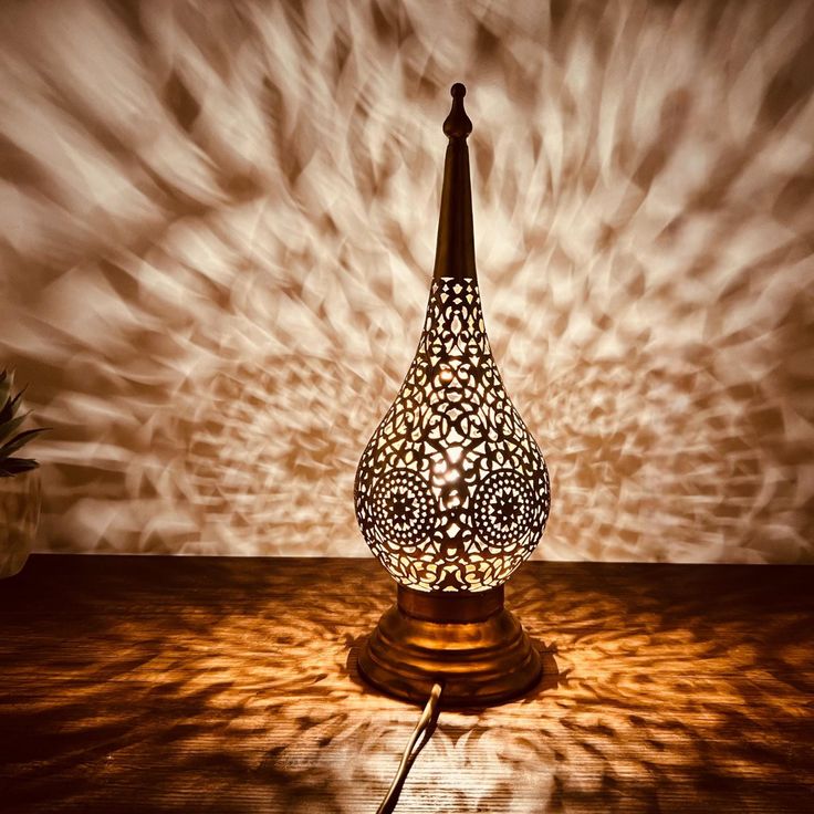Lampada da Tavolo Marocchina in Ottone – Lanterna Orientale Artigianale con Intagli Decorativi