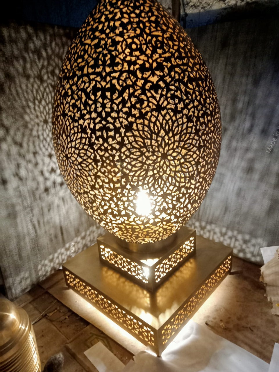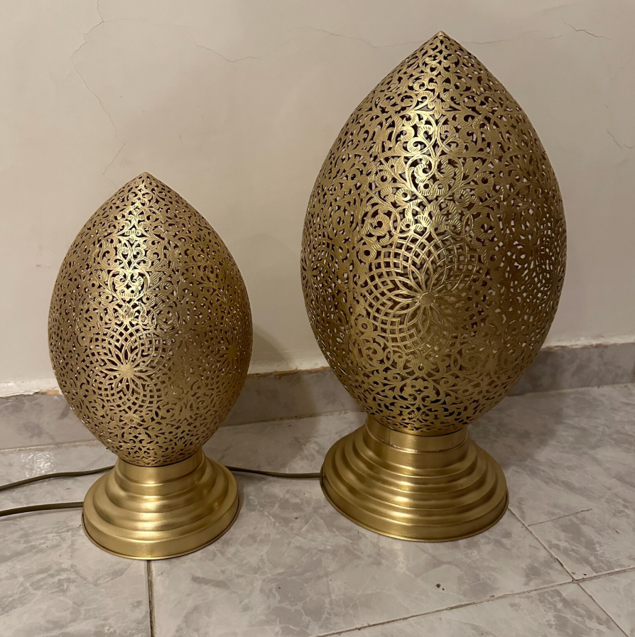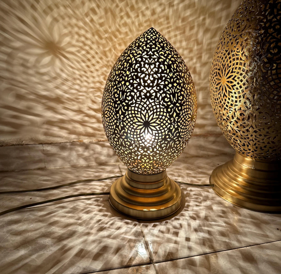 Lampada da Tavolo Marocchina in Ottone Fatto a Mano – Paralume Artistico