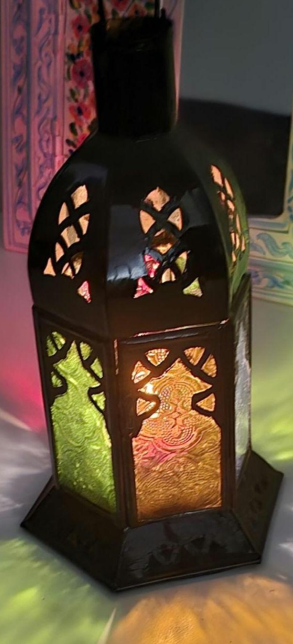 Questa lanterna orientale decorativa è un pezzo unico pensato per trasformare istantaneamente qualsiasi ambiente. Realizzata in metallo lavorato con raffinati motivi traforati, diffonde una luce morbida e calda che crea un’atmosfera rilassante ed elegante.